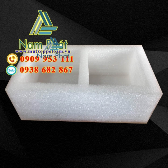 Mút xốp định hình, khay xốp định hình pe foam là sản phẩm được gia công trực tiếp từ các cuộn xốp pe foam chống sốc.
